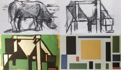 Theo van Doesburg, the founder of De Stijl, also simplified images into stylised abstracted compositions.